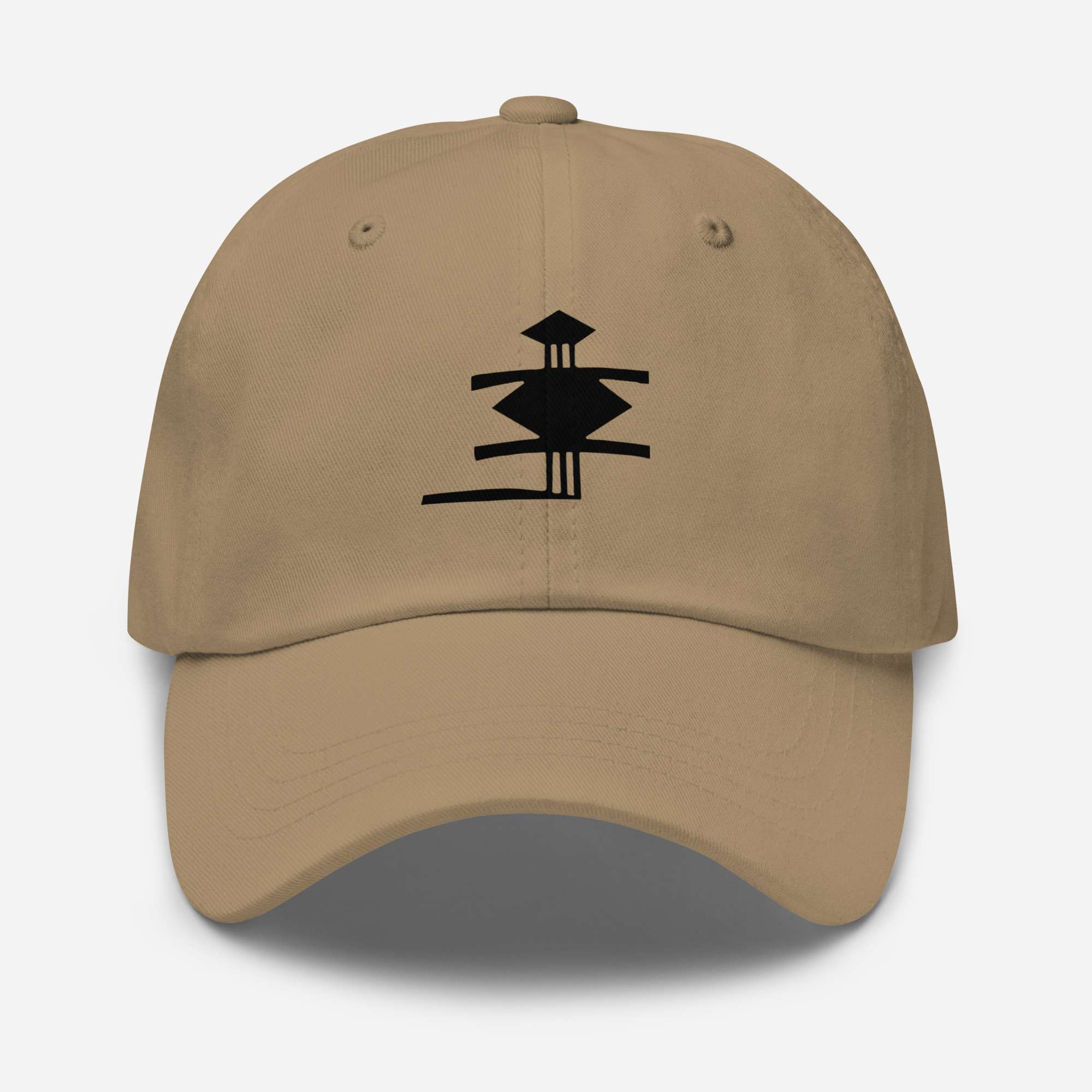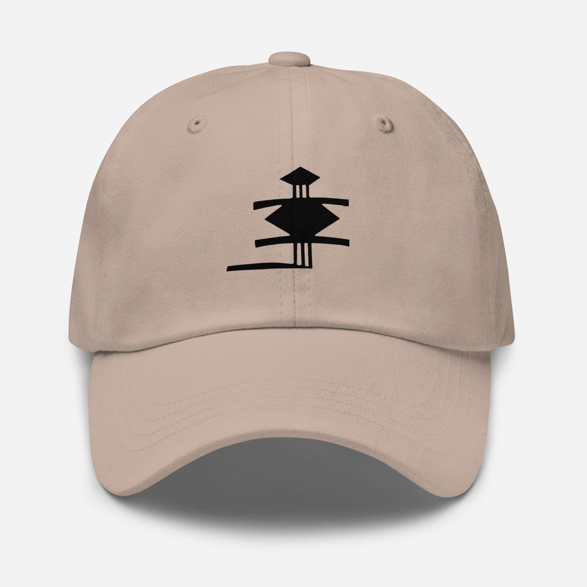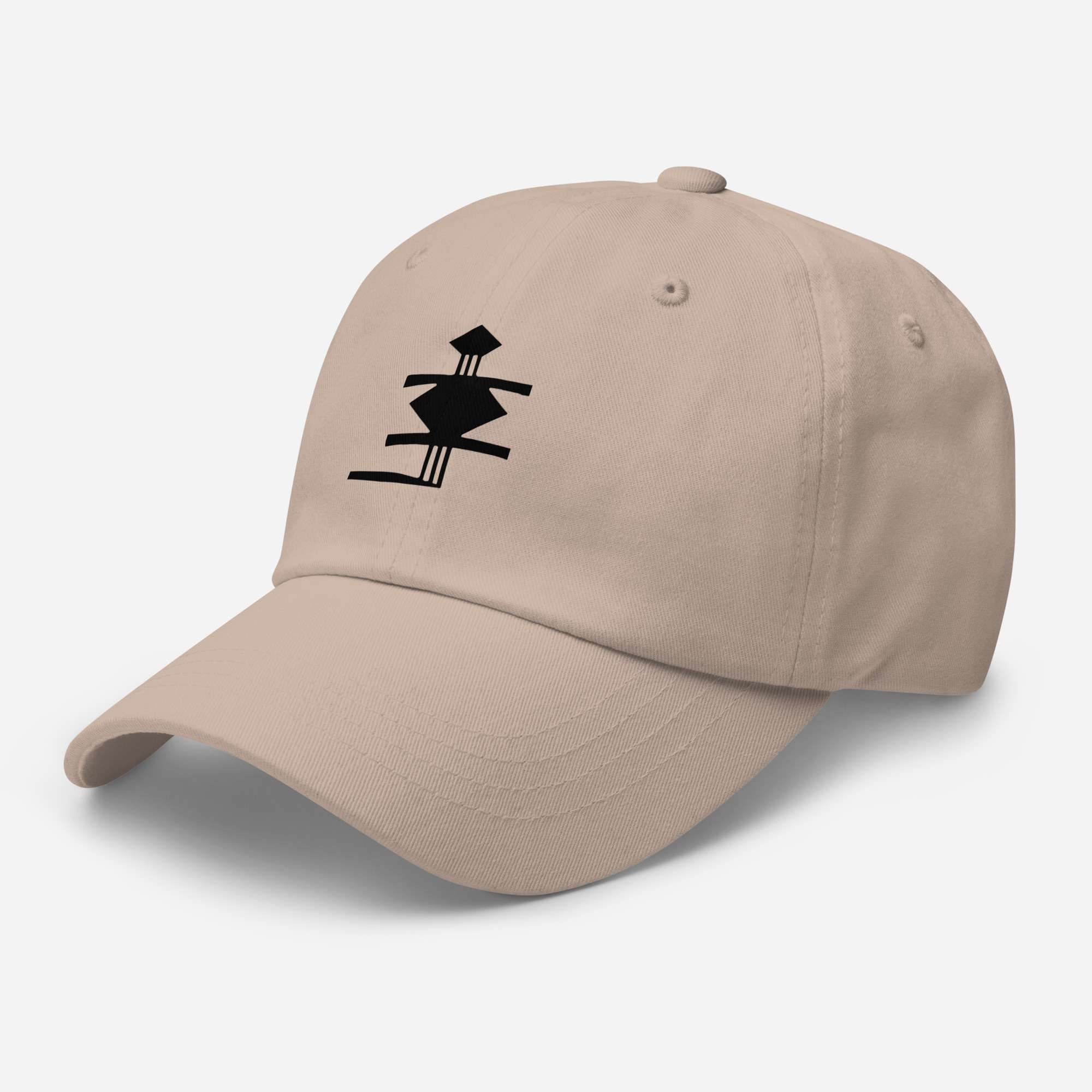 Dad-Hats sind nicht nur für Väter. Dieser hat ein flaches Profil mit verstellbarem Riemen und gebogenem Schirm.