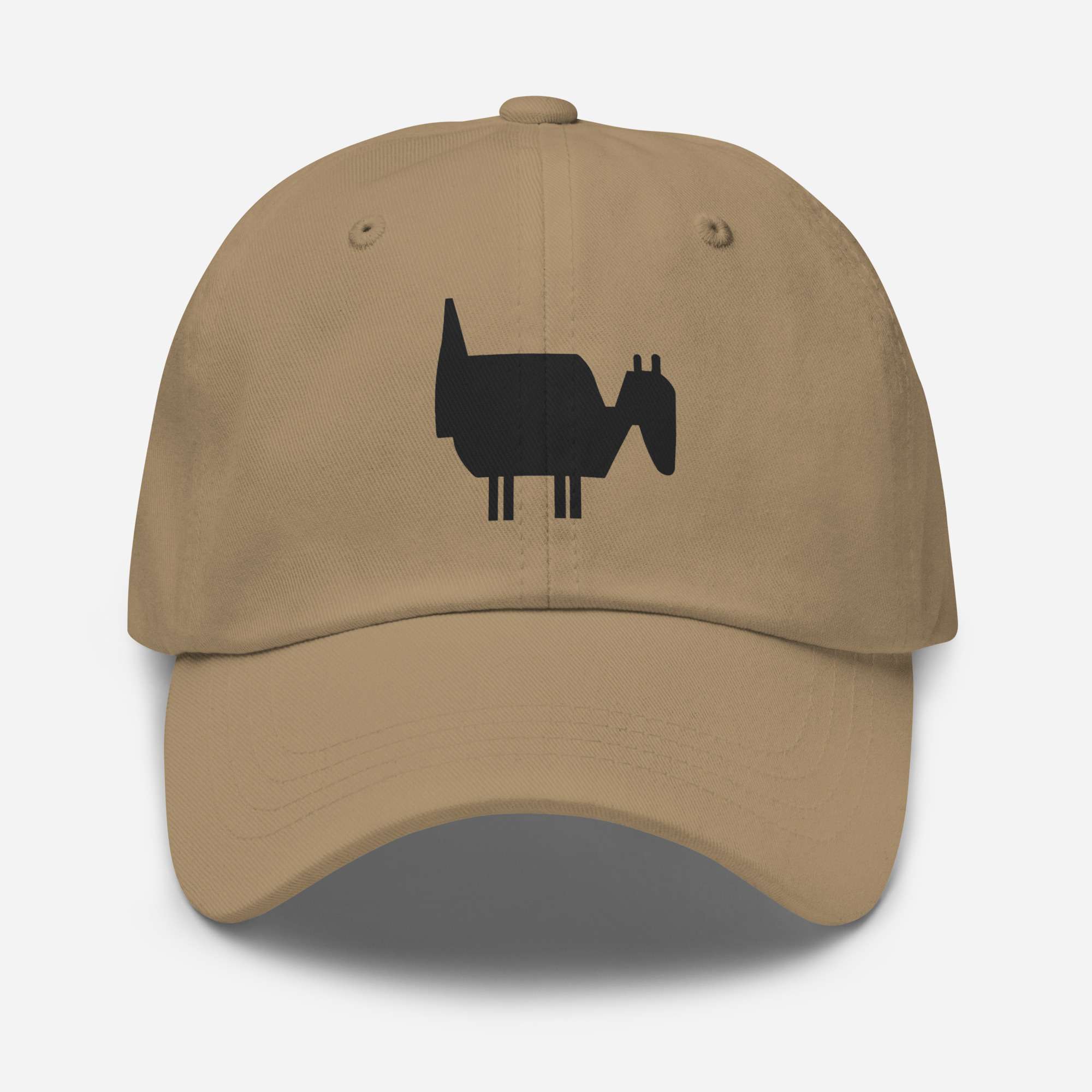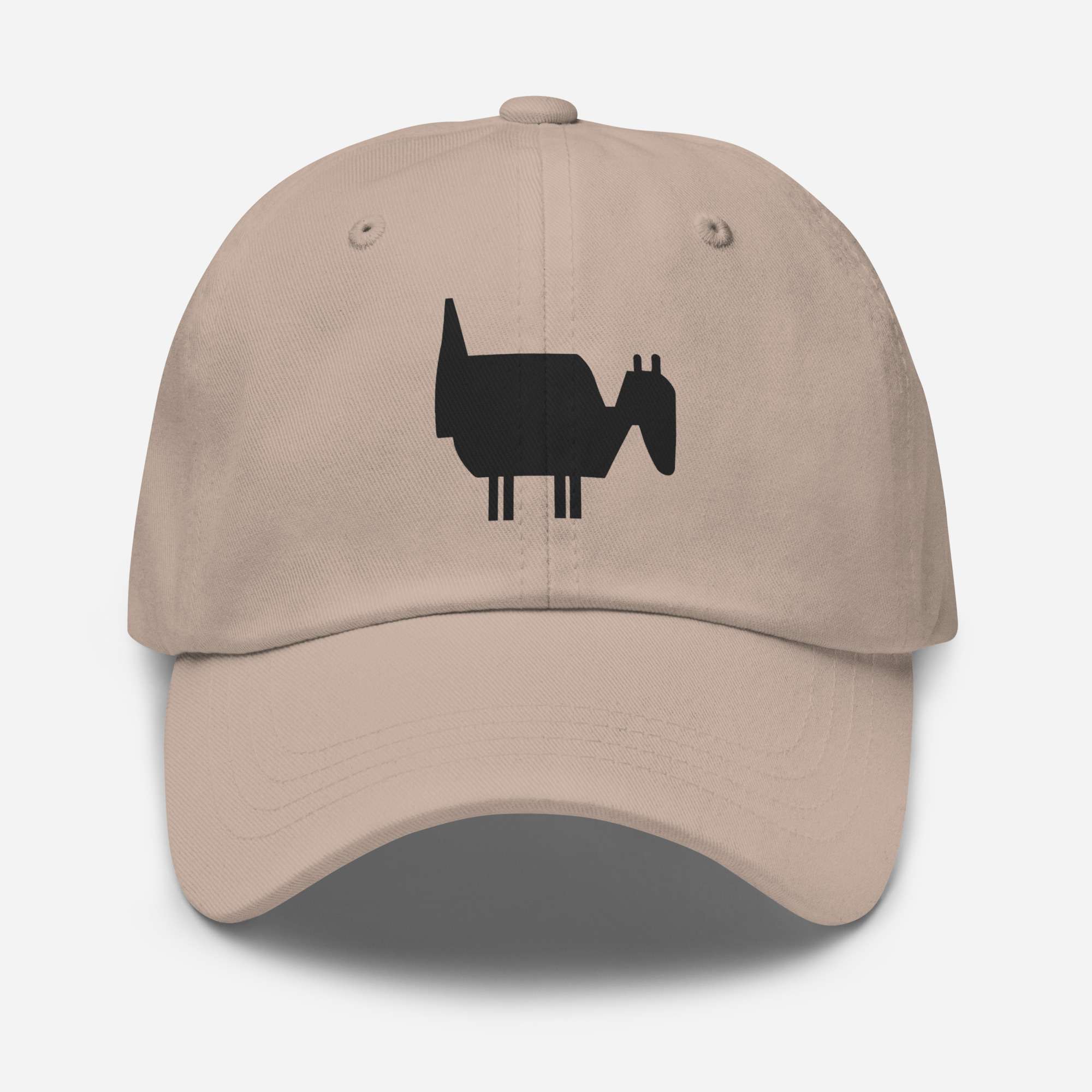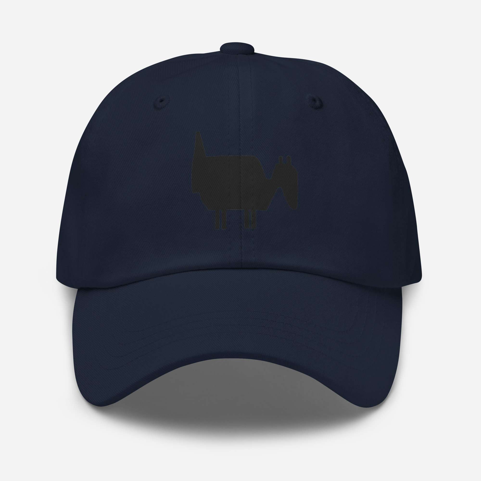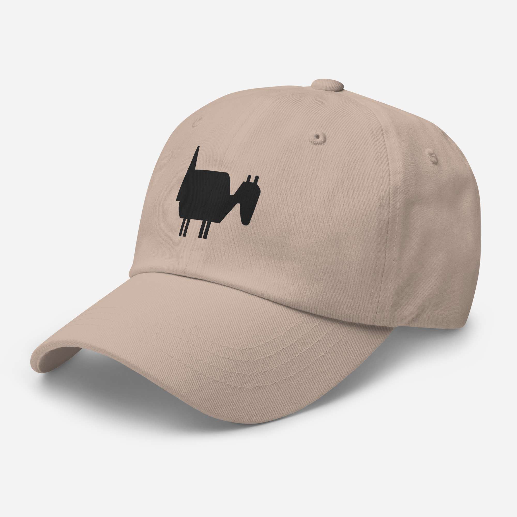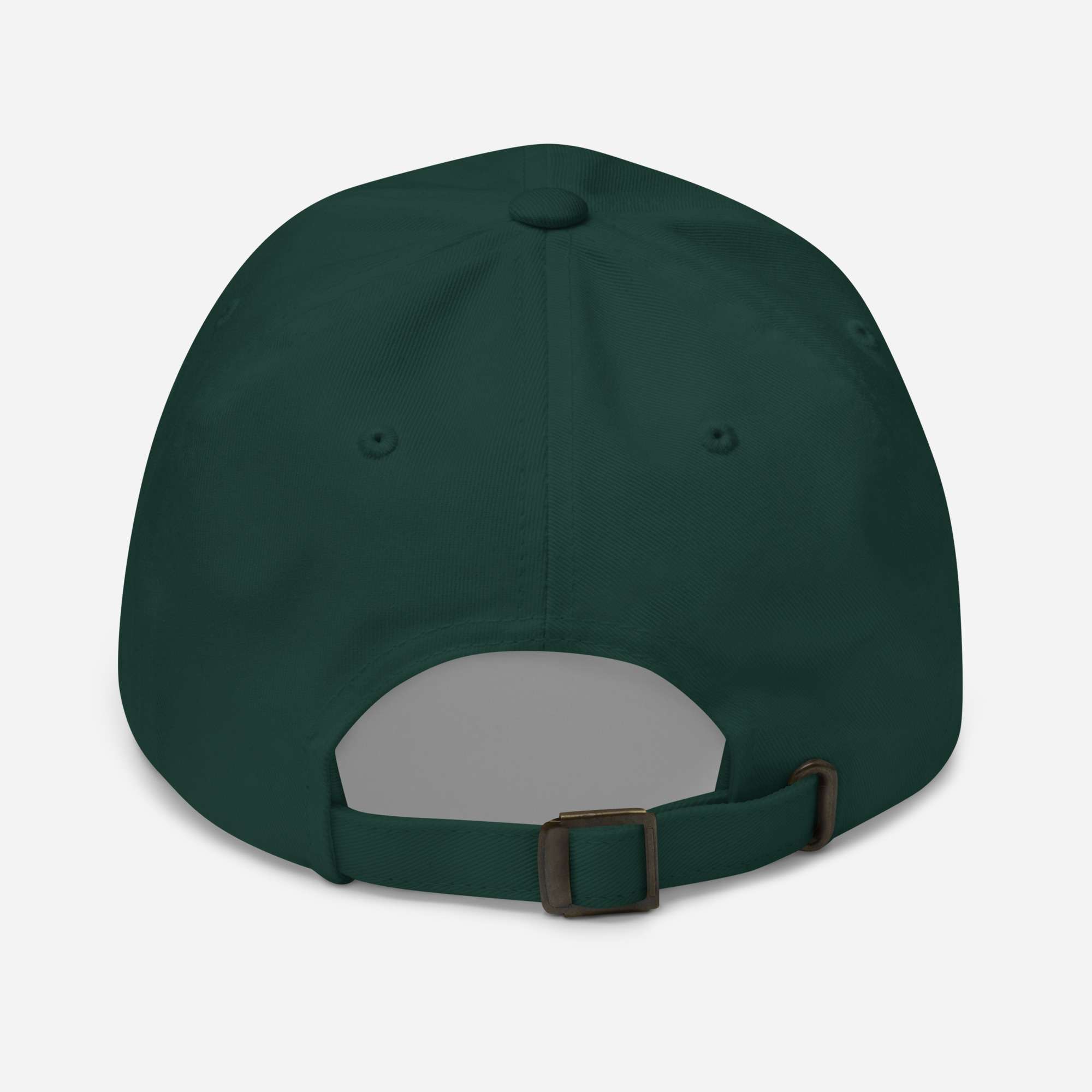 Dad-Hats sind nicht nur für Väter. Dieser hat ein flaches Profil mit verstellbarem Riemen und gebogenem Schirm.