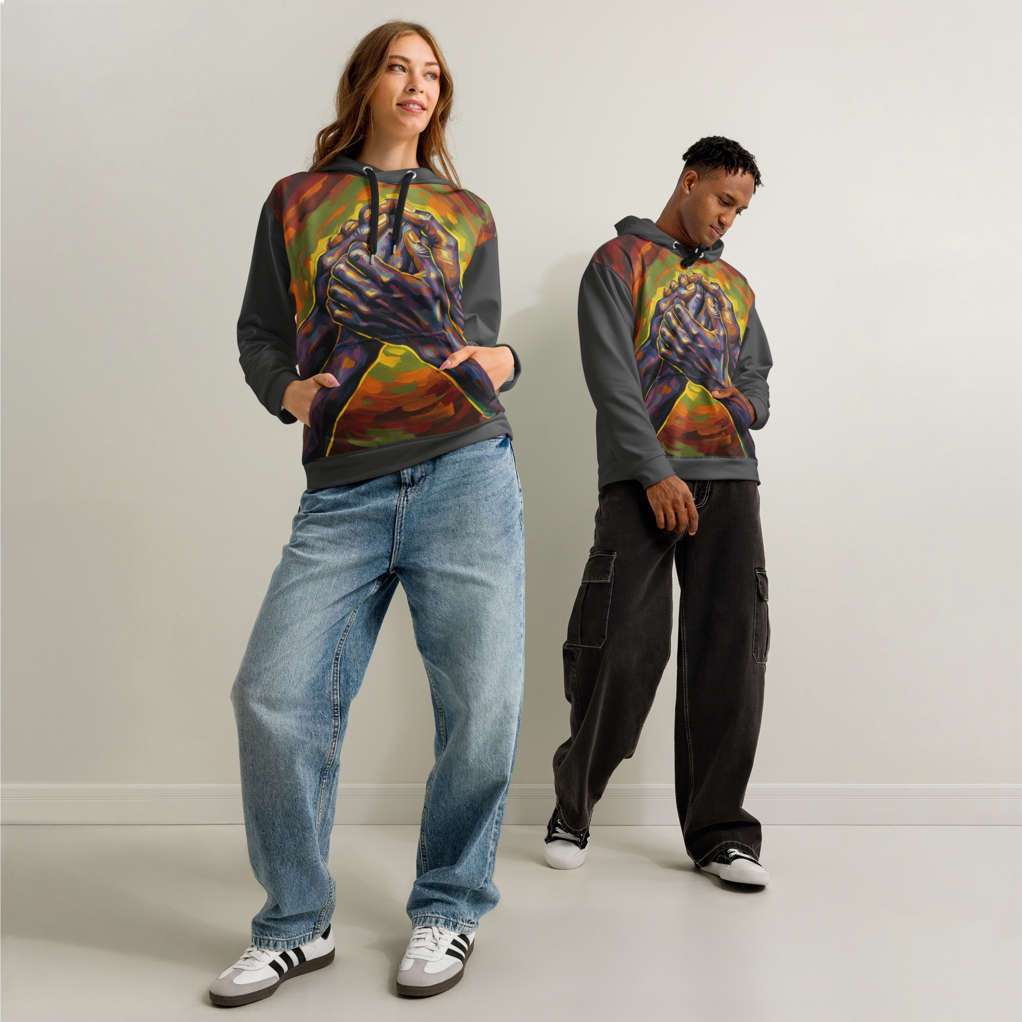 Dieser Premium-Hoodie vereint Komfort mit Stil. Die lockere Passform und der weiche Baumwollstoff machen ihn ideal für lässige Looks, während das Allover-Druck-Design dir erlaubt, einzigartige und auffällige Styles zu gestalten.